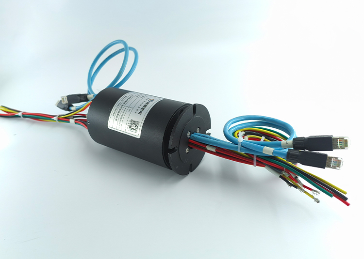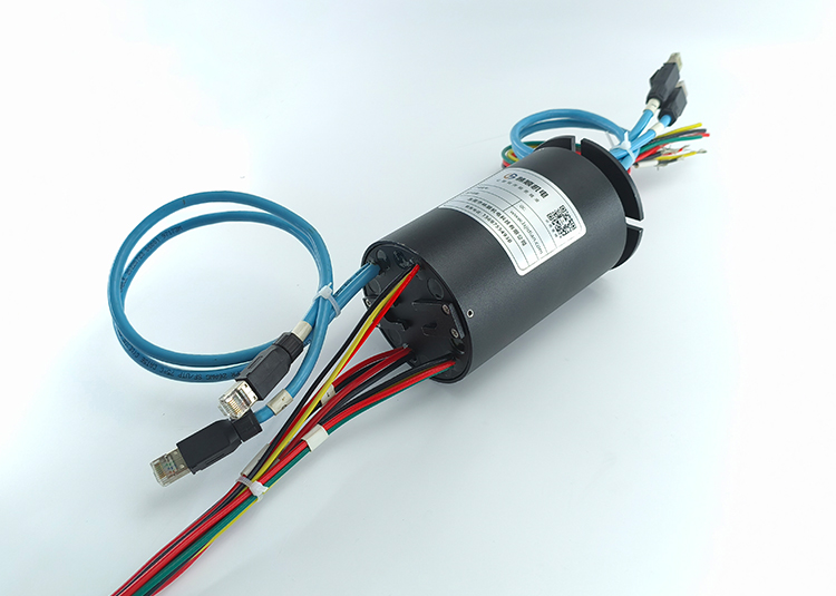 断衔接。其采用模块化通路布局,将电流与信号通道独立划分,通过贵金属镀金触点与弹性电刷组件构建传输核心,接触电阻变化值低至0.01Ω以下,既能稳定为驱动电机等执行部件供给强电,又可精准传输编码器信号、以太网信号、控制指令等多类型信号,避免相互干扰。